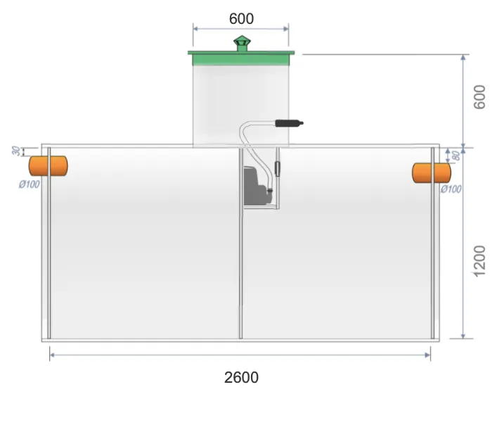 Длина 2600 мм Диаметр 1200 мм Высота 1800мм Толщина 19 мм с возможностью установить насос
