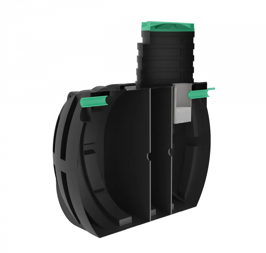 Септик выполнен из линейного полиэтилена. Общий объём 5 500 литров. Септик имеет круглую форму. В септике предусмотрена одна горловина. Также у септика есть 2 патрубка: d=110мм, длиной 60-100 мм каждый. Комплектация S создана для регионов с низким уровнем грунтовых вод и является энергонезависимой.