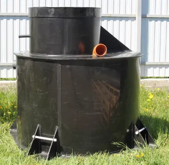 Установка выполнена в виде пластиковой емкости цилиндрической формы, состоящая из двух частей – корпуса и технологической горловины с крышкой.