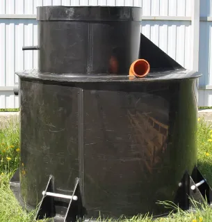 Установка выполнена в виде пластиковой емкости цилиндрической формы, состоящая из двух частей – корпуса и технологической горловины с крышкой.