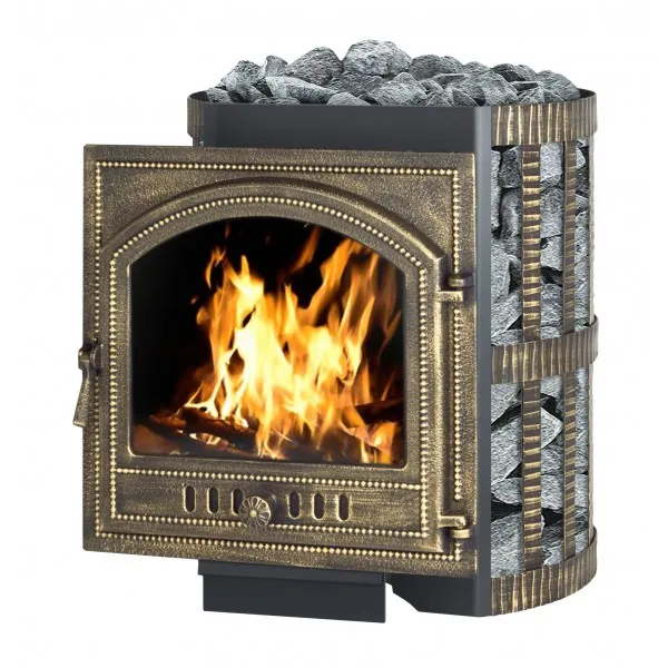 Данная печь имеет высокое КПД, а так же изготовлена из специальной конструкционной стали с элементами топки достигающими 12 мм, которая при высоких температурах не подвергается деформации. Металлическая печь как известно достаточно быстро прогревает помещение, проста в обслуживании и установке. Конвекционно-вентилируемый кожух (сетка) вмещает в себя большое количество камней, которые в свою очередь долго удерживают тепло и не выделяют инфракрасное излучение.
