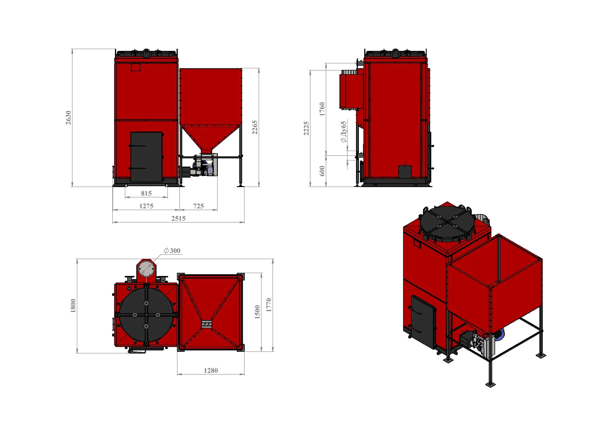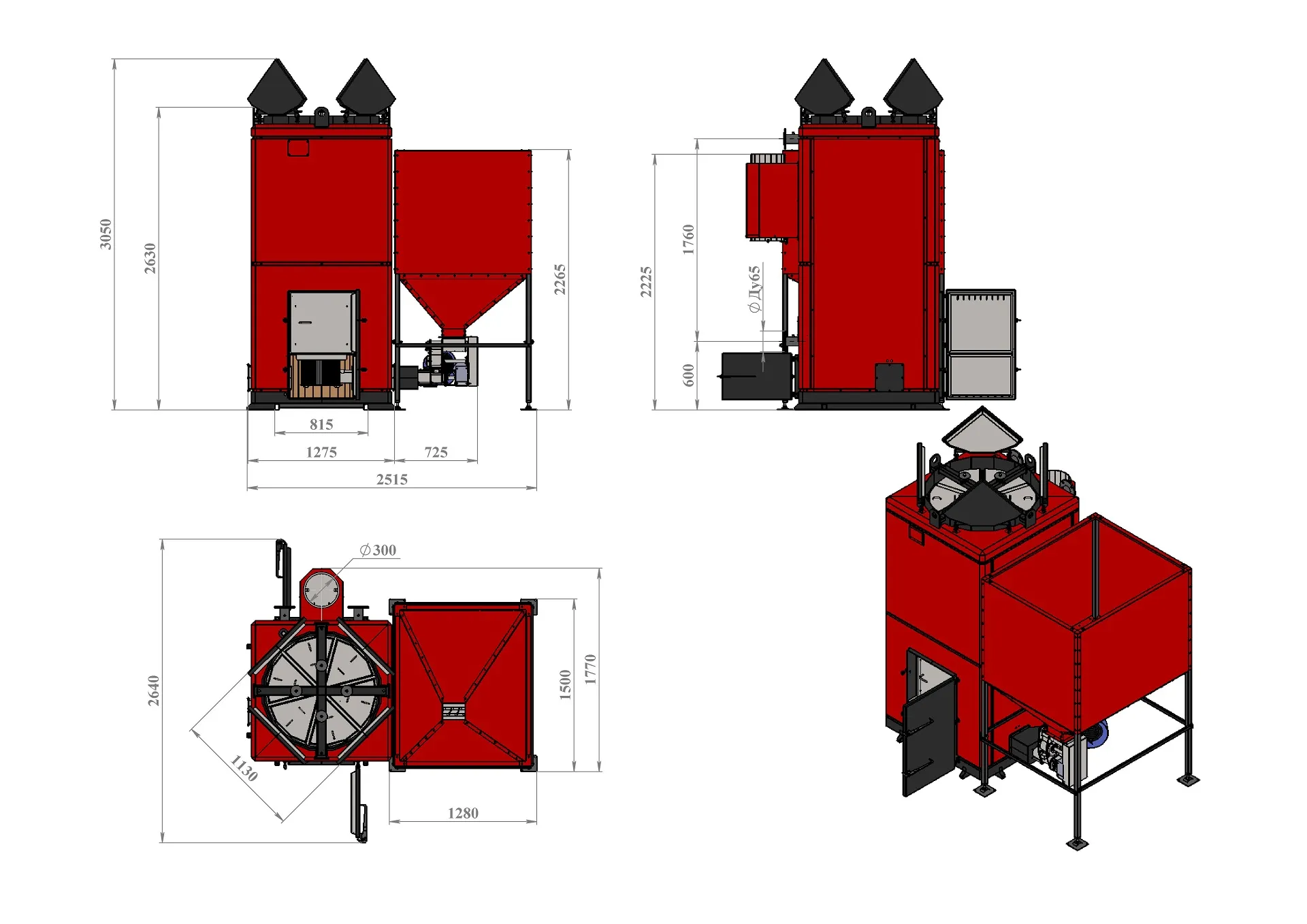 | Общие габариты включая бункер | 3050х2640х2540мм |