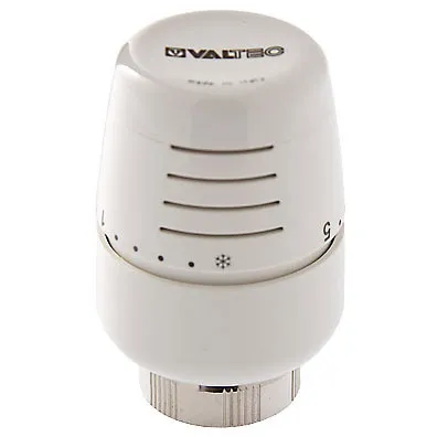 Термостатическая головка устанавливается на термостатический радиаторный клапан и предназначена для автоматического регулирования расхода теплоносителя через отопительный прибор в зависимости от температуры воздуха в помещении. Использование регулирующих клапанов VALTEC c термостатической головкой позволяет автоматически поддерживать заданную температуру в помещении с точностью до 1 С. Наполнитель сильфона (термочувствительного элемента) – толуол. Диапазон регулирования температуры воздуха – от 6,5 до 28 С. Присоединение головки к клапану осуществляется с помощью накидной гайки с резьбой М30 x 1,5.