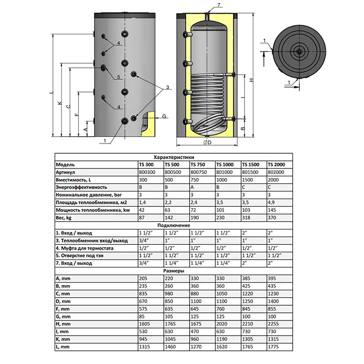 Буферная емкость Parpol TS 1500 со змеевидным теплообменником, для систем отопления, объёмом 1500 литров.